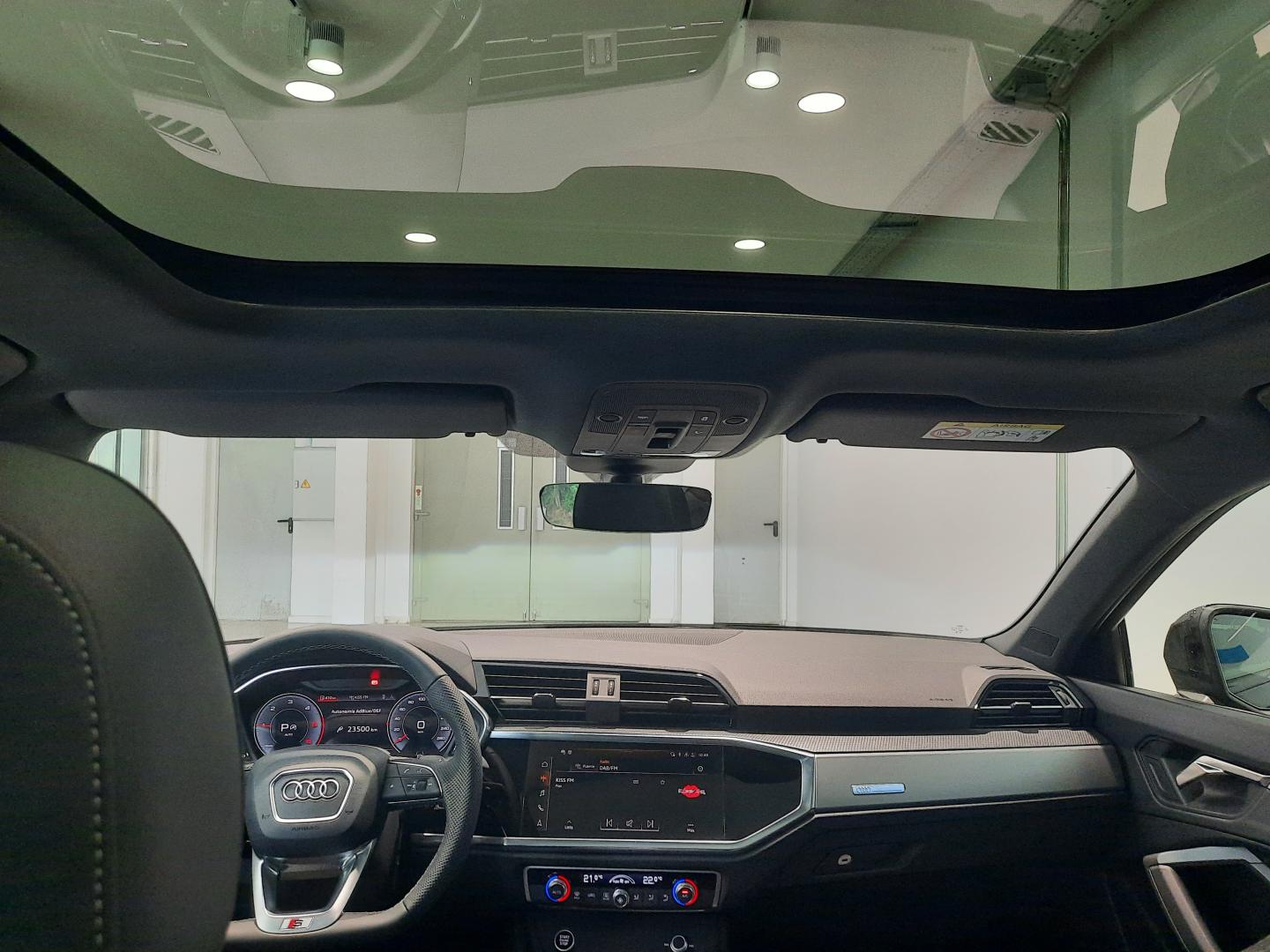 EQUIPAMIENTO EXTRA: TECHO CORREDIZO PANORÁMICO + PAQUETE CONFORT + AUDI PHONE BOX LIGHT CON CARGA POR INDUCCIÓN, PAQUETE DE ILUMINACIÓN AMBIENTE DE CONTORNO MULTICOLOR, ASISTENTE PARA LUCES DE CARRETERA, SEGURO PARA NIÑOS con accionamiento eléctrico, ASISTENTE DE DESCENSO DE PENDIENTES, PARACHOQUES S LINE EN PINTURA COMPLETA, LLANTAS AUDI SPORT DE 20” CON DISEÑO DE 5 RADIOS DOBLES ÓPTICA NEGRO MATE, CÁMARA DE ENTORNO 360º,