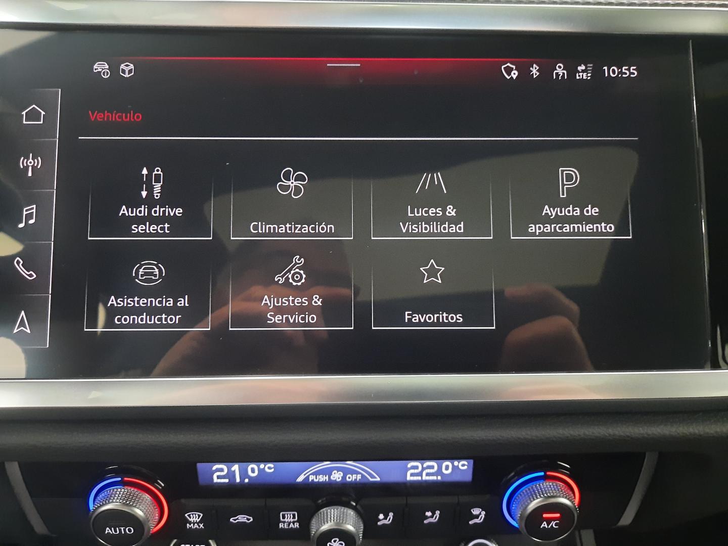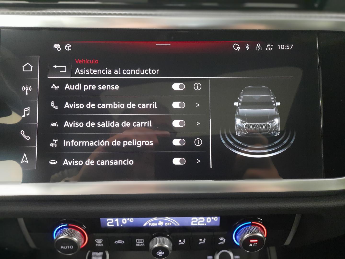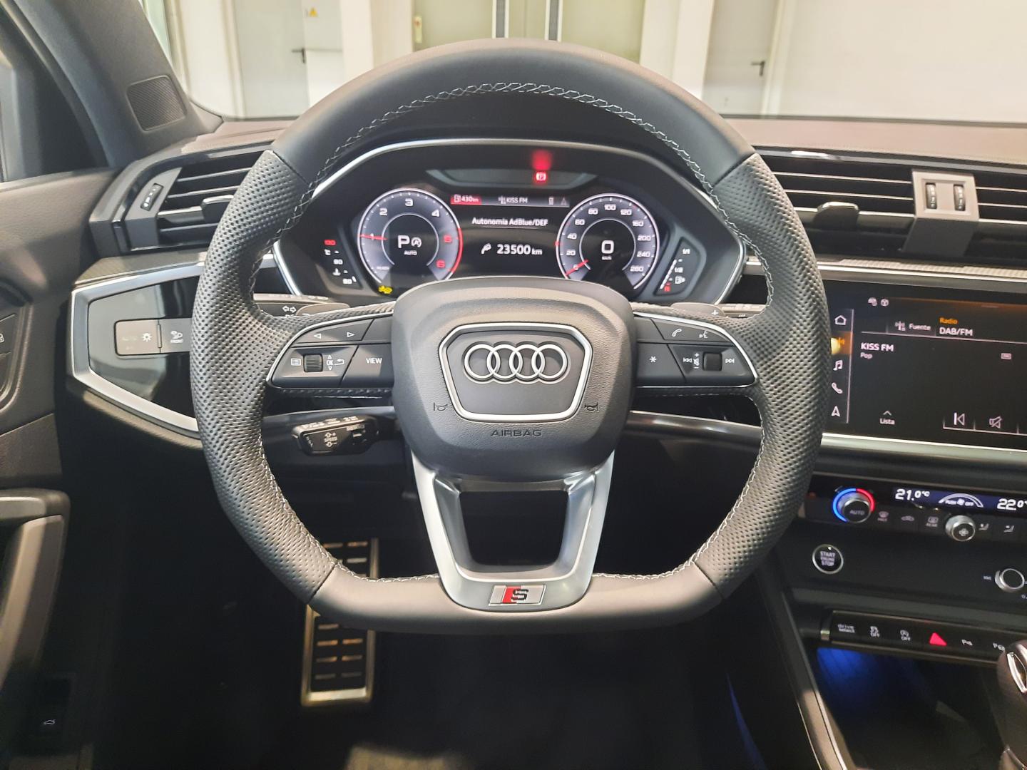 EQUIPAMIENTO EXTRA: PAQUETE CONFORT + AUDI PHONE BOX LIGHT CON CARGA POR INDUCCIÓN, PAQUETE DE ILUMINACIÓN AMBIENTE DE CONTORNO MULTICOLOR, ASISTENTE PARA LUCES DE CARRETERA, SEGURO PARA NIÑOS con accionamiento eléctrico, LLANTAS AUDI SPORT DE 20” CON DISEÑO DE 5 RADIOS DOBLES ÓPTICA NEGRO MATE, CÁMARA DE ENTORNO 360º,