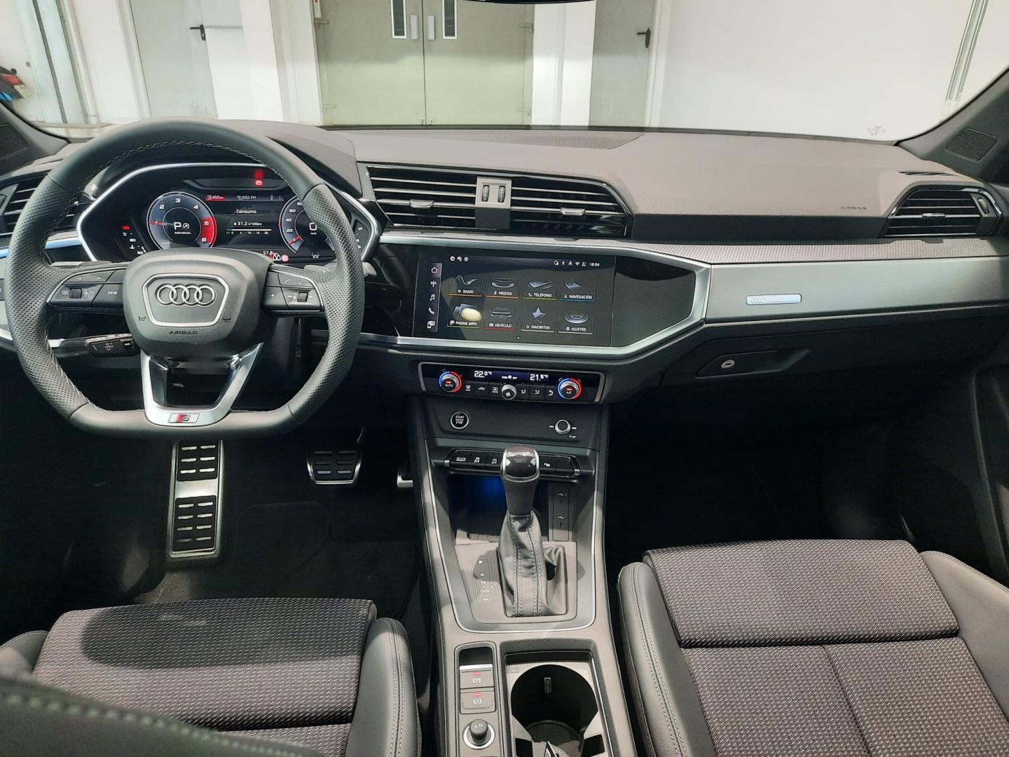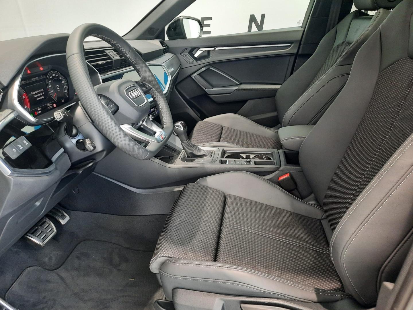 Equipamiento: techo corredizo panorámico, paquete iluminación ambiente de contorno multicolor, paquete confort (portón maletero con apertura eléctrica, etc), cámara de entorno 360º, seguro para niños eléctrico, Audi phone box con carga por inducción, parachoques S Line en pintura completa, asistente para luces de carretera, tren de rodaje deportivo, park assist, llave de confort sin safelock, retrovisores exteriores ajustables/abatibles eléctricos y térmicos con ajuste antideslumbrante automático ambos lados, toma corriente y 2 conexiones USB detrás, llantas Audi Sport de 20”.
