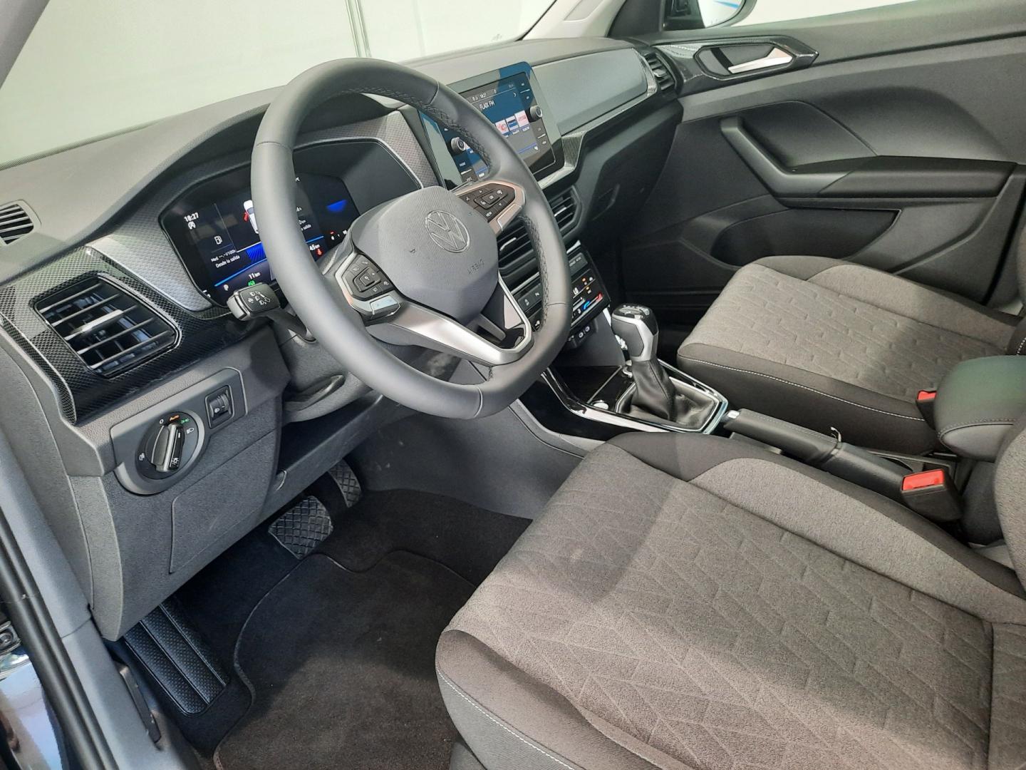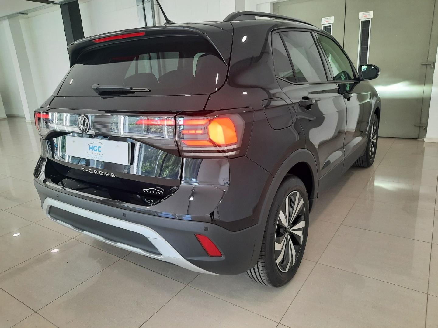 Equipamiento: paquete T-Cross Más, faros LED con encendido automático de luz de día, asistencia para luz de carretera “volante de cuero multifunción, digital cockpit, light assist”, sistema de cierre y arranque sin llave, conexión de Bluetooth con activación por voz, control de velocidad de crucero adaptativo con limitador, lane assist, front assist, advertencia de exceso de velocidad, sensores de aparcamiento delante y detrás con cámara de visión trasera, retrovisores exteriores orientables y abatibles eléctricos y calefactables, lunas traseras tintadas, app connect para Apple y Android, climatizador automático bizona, sistema de llamada de emergencia, ordenador de a bordo, anclajes isofix, rueda de repuesto de peso y espacio reducidos.